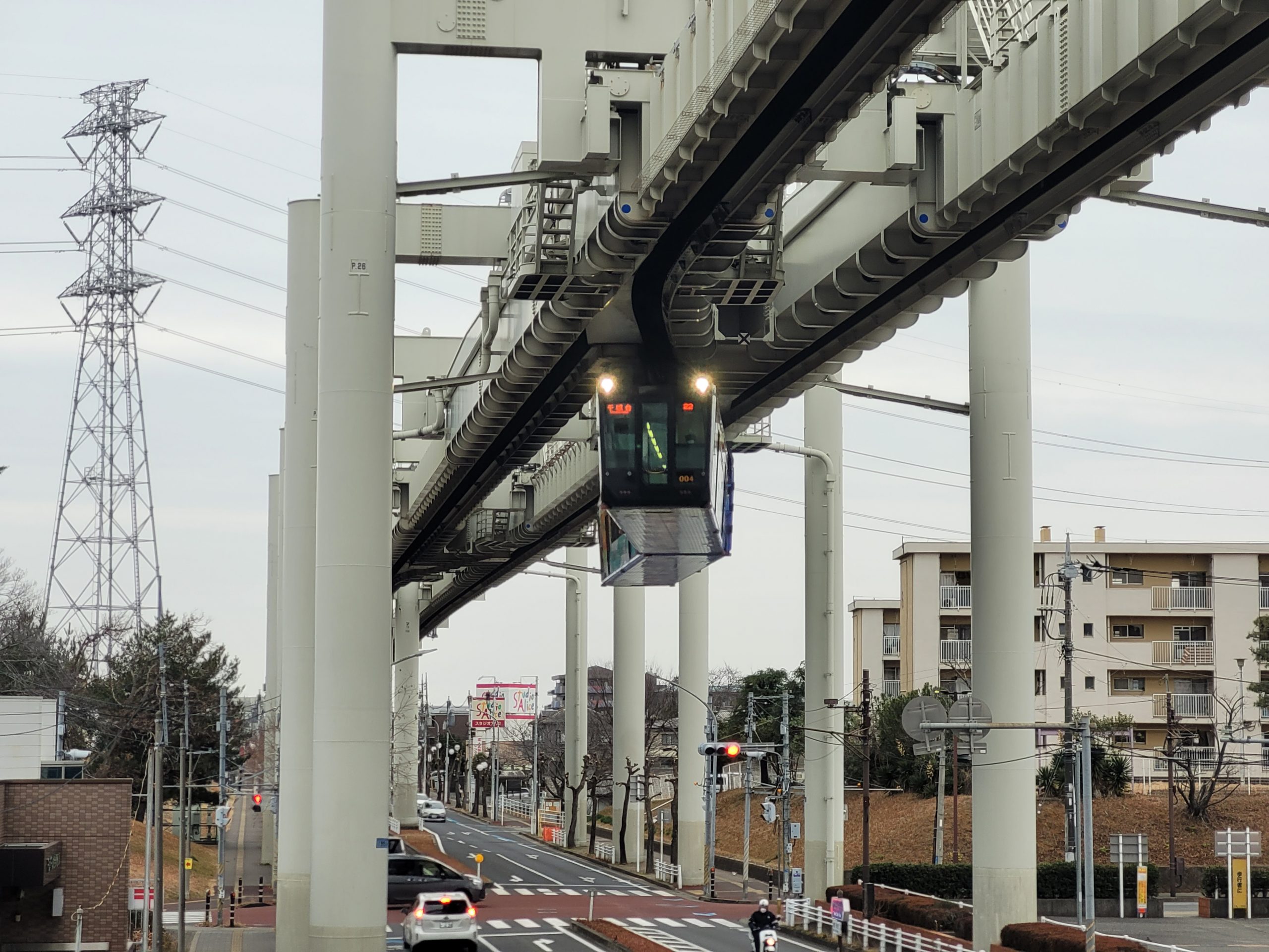 The Chiba Urban Monorail in Chiba, Japan, is the world’s longest suspended SAFEGE-type monorail system, with a total track length of 15.2 km across two lines and 18 stations. It opened in 1988, operating two-car trains from one depot and linking with several regional train lines. In 2023 it carried 48,949 passengers per day, making it not only the longest suspended monorail by length but also the busiest of its type globally.