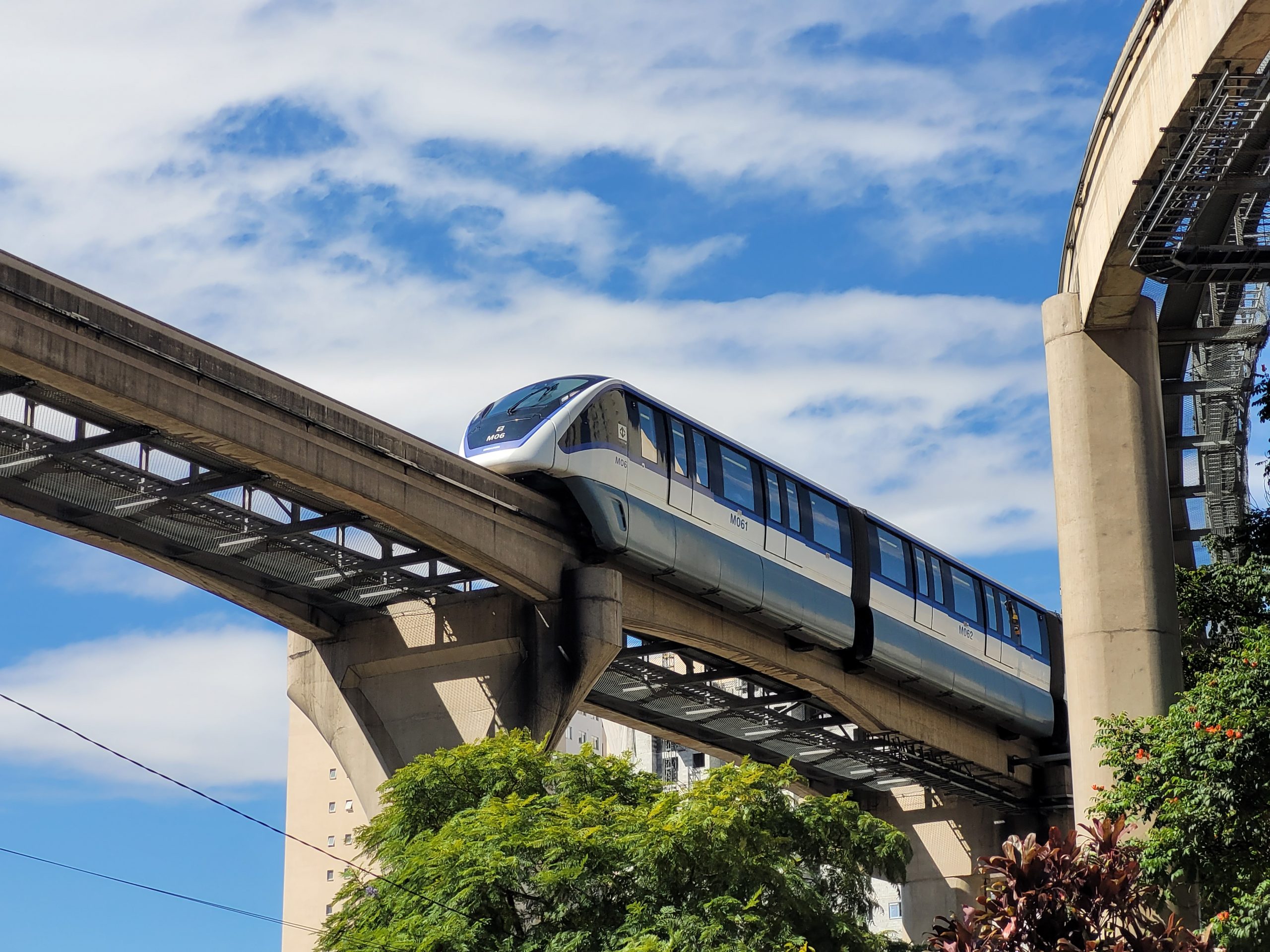 Line 15-Prata of the Straddle Beam Monorail in São Paulo, part of the São Paulo Metro network, began operating in 2014 and is one of the highest-capacity monorail systems ever built. The system comprises 27 trains, each with 7 cars, supported by one depot with a second under construction, and was designed for an exceptional projected demand of up to 500,000 passengers per day. Even in its current, partially completed state, Line 15 carried approximately 139,000 passengers per day in 2024, demonstrating the ability of modern straddle-beam monorails to provide subway-level capacity.